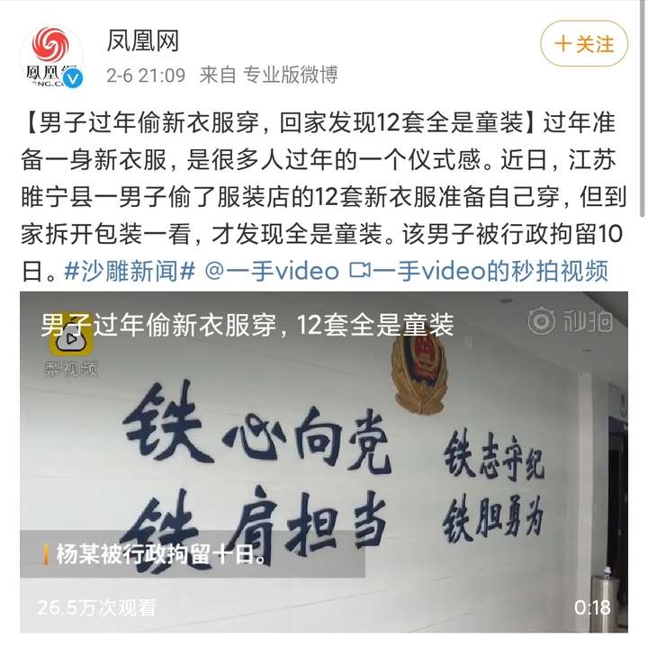 男子过年偷新衣服穿 回家发现都是童装