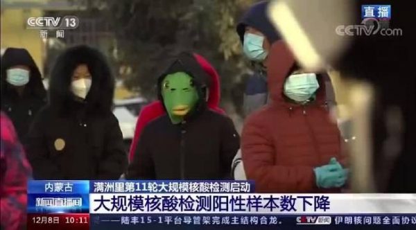 沙雕暴走:央视新闻现绿鱼头套男 由 沙雕新闻 · 2021年12月8日 在满洲里大规模核酸检测启动的新闻里,突然出现这个套着绿鱼头头套的画面 新浪微博: #新闻里出现绿鱼头# ; 5 4 投票数 沙雕指数